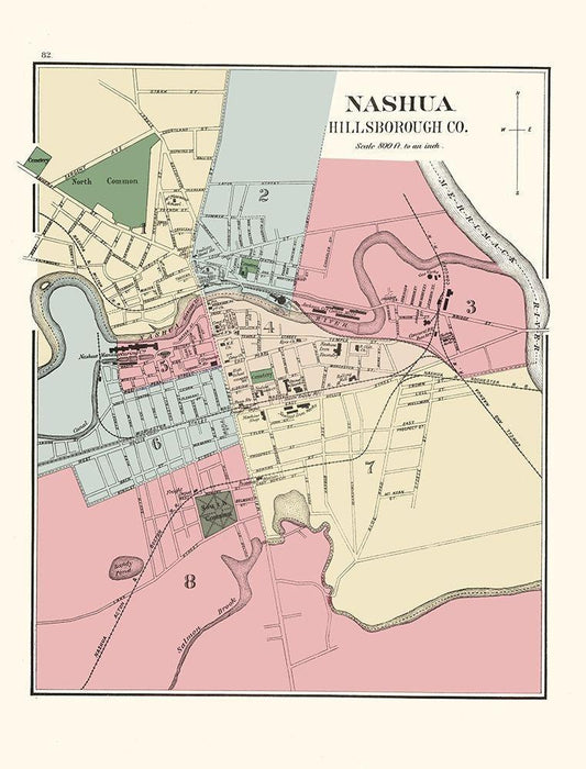 Nashua New Hampshire - Hitchcock 1877 White Modern Wood Framed Art Print with Double Matting by Hitchcock