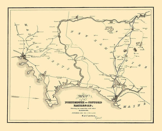 Portsmouth and Concord Railroad - Carter 1845 White Modern Wood Framed Art Print with Double Matting by Carter