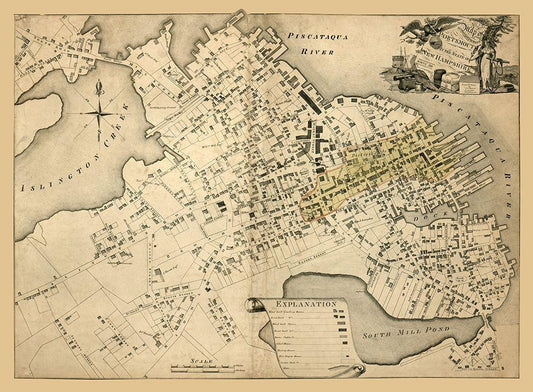Exeter New Hampshire - Dow 1845 White Modern Wood Framed Art Print with Double Matting by Dow