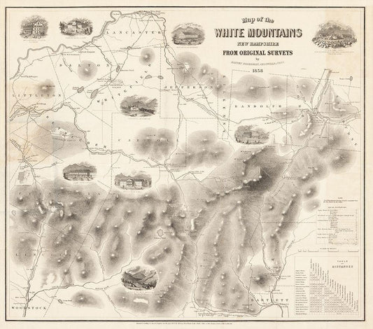 White Mountains New Hampshire -Boardman 1858 White Modern Wood Framed Art Print with Double Matting by Boardman
