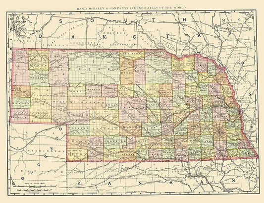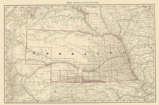 Nebraska - Rand McNally 1897 White Modern Wood Framed Art Print with Double Matting by Rand McNally