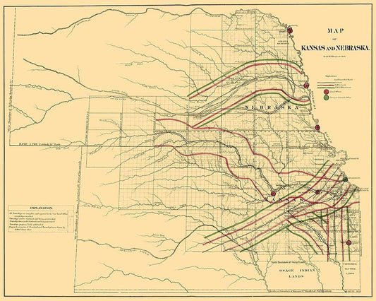 Kansas, Nebraska Railroads - LOC 1865 White Modern Wood Framed Art Print with Double Matting by LOC