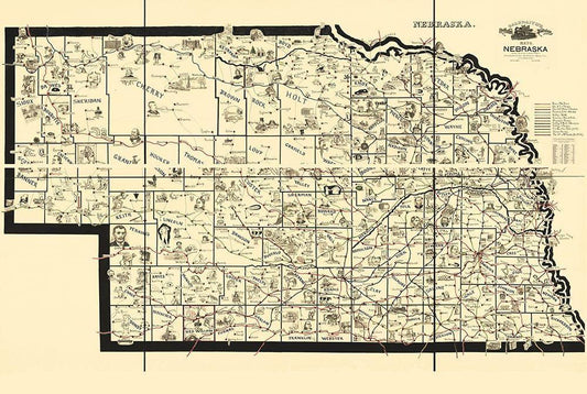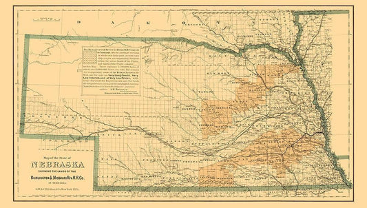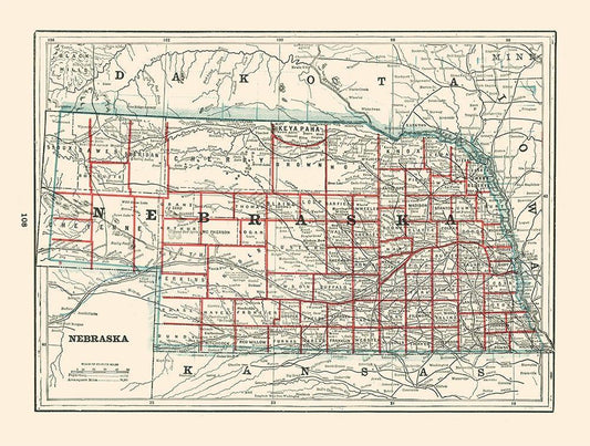 Nebraska - Cram 1879 White Modern Wood Framed Art Print with Double Matting by Cram