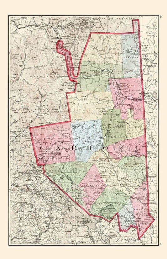 Carroll New Hampshire - Walling 1877 White Modern Wood Framed Art Print with Double Matting by Walling