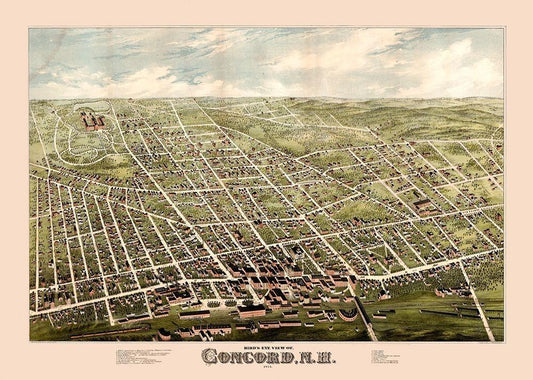 Concord New Hampshire -1875 White Modern Wood Framed Art Print with Double Matting by Unknown