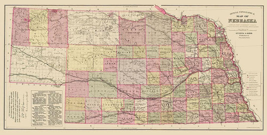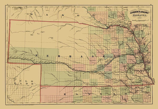 Nebraska - Everts 1885 White Modern Wood Framed Art Print with Double Matting by Everts