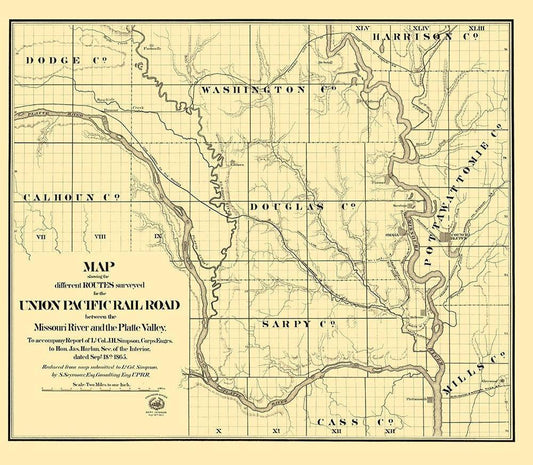 Union Pacific Railroad - Seymour 1865 White Modern Wood Framed Art Print with Double Matting by Seymour