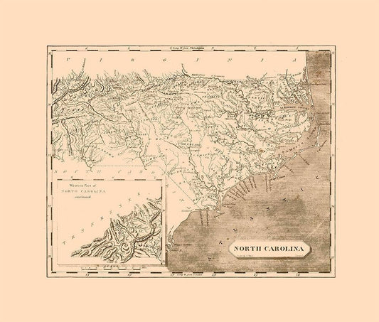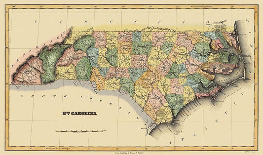 North Carolina - Henshaw 1828 White Modern Wood Framed Art Print with Double Matting by Henshaw