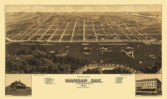 Mandan North Dakota - Stoner 1883 White Modern Wood Framed Art Print with Double Matting by Stoner