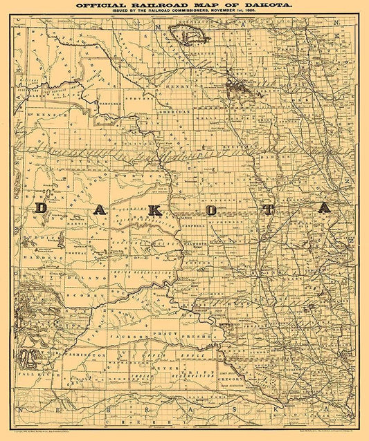 North Dakota South Dakota -Rand McNally 1886 White Modern Wood Framed Art Print with Double Matting by Rand McNally