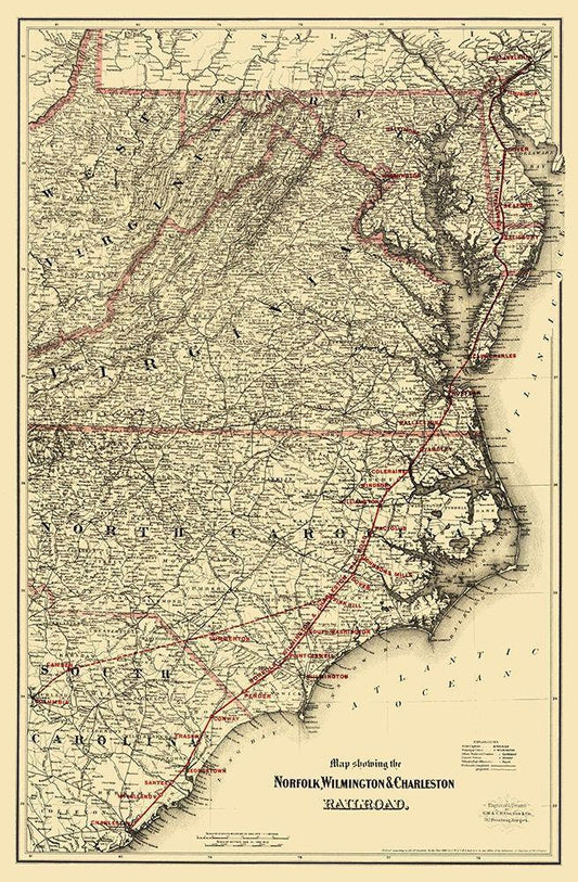 Norfolk, Wilmington and Charleston Railroad 1891 White Modern Wood Framed Art Print with Double Matting by Colton