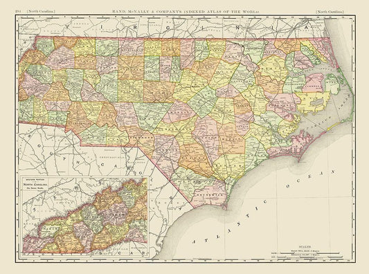 North Carolina - Rand McNally 1897 White Modern Wood Framed Art Print with Double Matting by Rand McNally