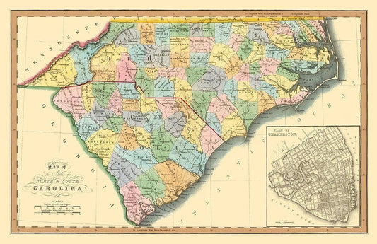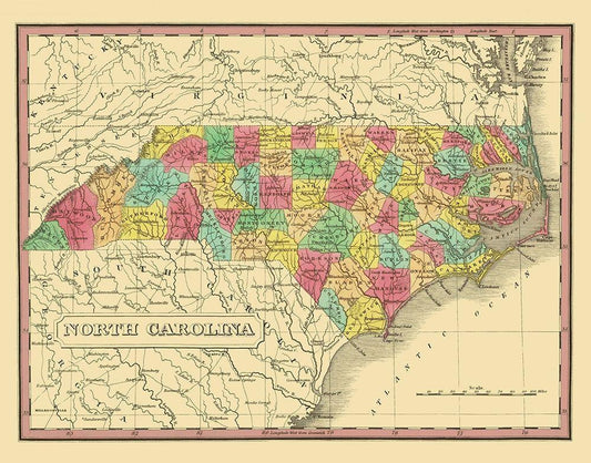 North Carolina, South Carolina - Hinton 1832 White Modern Wood Framed Art Print with Double Matting by Hinton