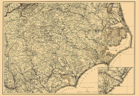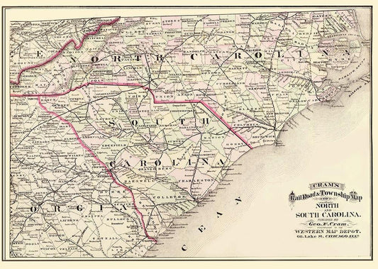 North Carolina, South Carolina - Cram 1875 White Modern Wood Framed Art Print with Double Matting by Cram