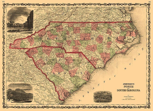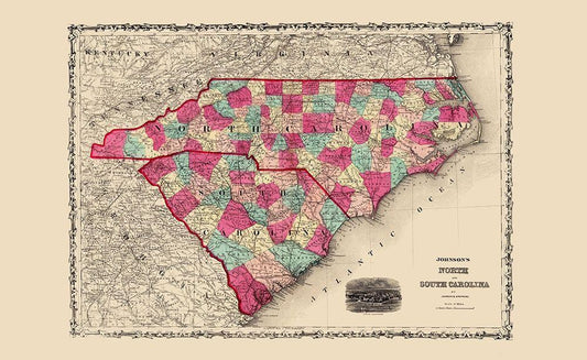 North Carolina, South Carolina - Johnson 1860 White Modern Wood Framed Art Print with Double Matting by Johnson