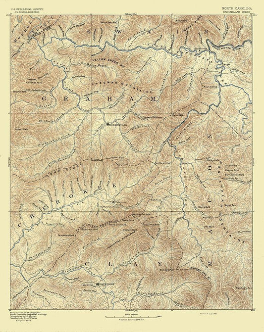 Nantahalah Sheet North Carolina - USGS 1885 White Modern Wood Framed Art Print with Double Matting by USGS