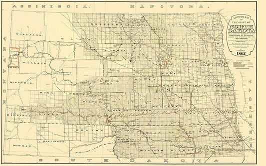North Dakota Railroads - Higbee 1892 White Modern Wood Framed Art Print with Double Matting by Higbee