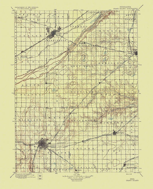 Grand Island Nebraska Quad - USGS 1897 White Modern Wood Framed Art Print with Double Matting by USGS