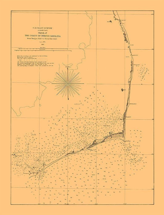 North Carolina Coast - Bache 1861 White Modern Wood Framed Art Print with Double Matting by Bache