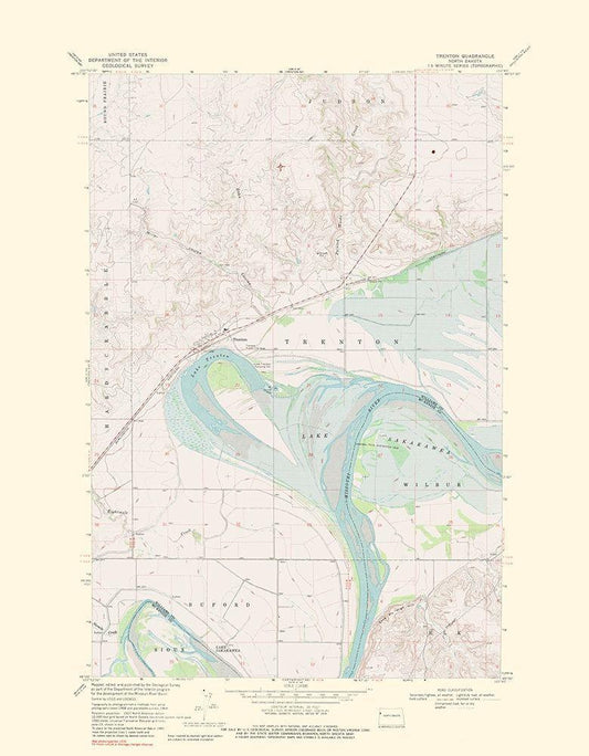 Trenton North Dakota Quad - USGS 1976 White Modern Wood Framed Art Print with Double Matting by USGS