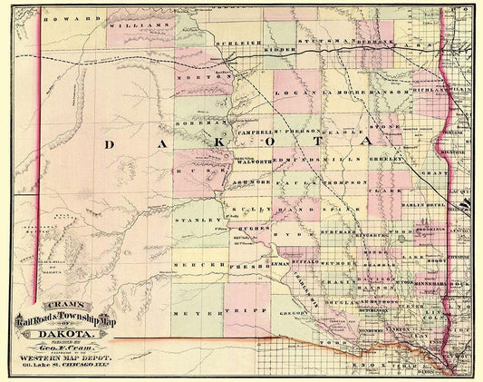 Dakota Territory - Cram 1875 White Modern Wood Framed Art Print with Double Matting by Cram