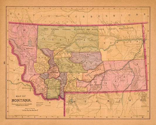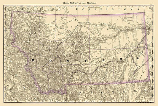 Montana - Rand McNally 1879 White Modern Wood Framed Art Print with Double Matting by Rand McNally