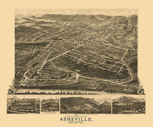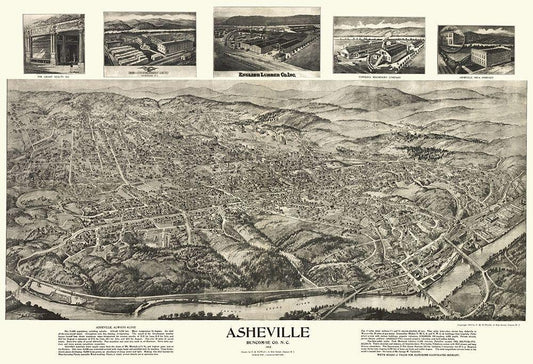 Asheville North Carolina - Fowler 1912 White Modern Wood Framed Art Print with Double Matting by Fowler