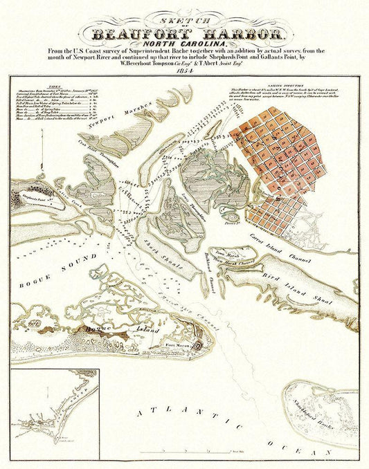Beaufort Harbor North Carolina - Tompson 1854 White Modern Wood Framed Art Print with Double Matting by Tompson