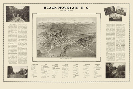 Black Mountain North Carolina - Fowler 1912 White Modern Wood Framed Art Print with Double Matting by Fowler