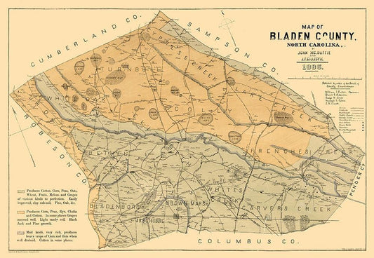 Bladen County North Carolina - Mc Duffie 1885 White Modern Wood Framed Art Print with Double Matting by Mc Duffie