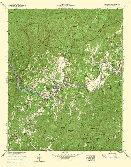 Bryson City North Carolina Quad - USGS 1935 White Modern Wood Framed Art Print with Double Matting by USGS