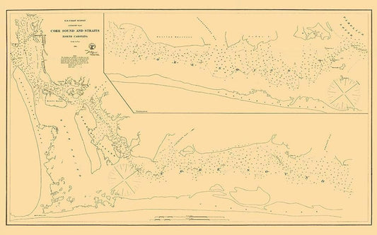 Core Sound, Straits - USCS 1864 White Modern Wood Framed Art Print with Double Matting by USCS