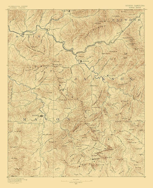 Cowee North Carolina Sheet - USGS 1886 White Modern Wood Framed Art Print with Double Matting by USGS