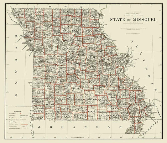 Missouri - USGLO 1878 White Modern Wood Framed Art Print with Double Matting by USGLO