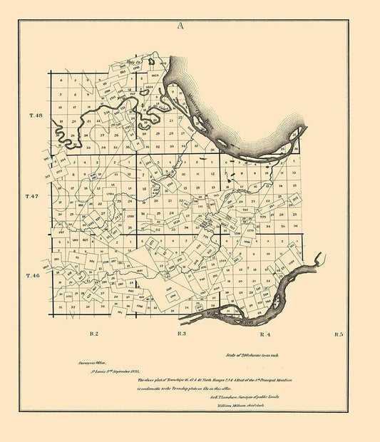 Missouri - Mitchell 1846 White Modern Wood Framed Art Print with Double Matting by Mitchell