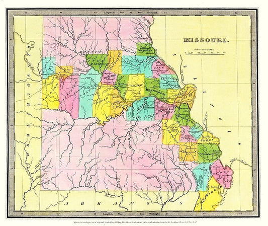 Missouri - Wiley and Putnam 1838 White Modern Wood Framed Art Print with Double Matting by Wiley