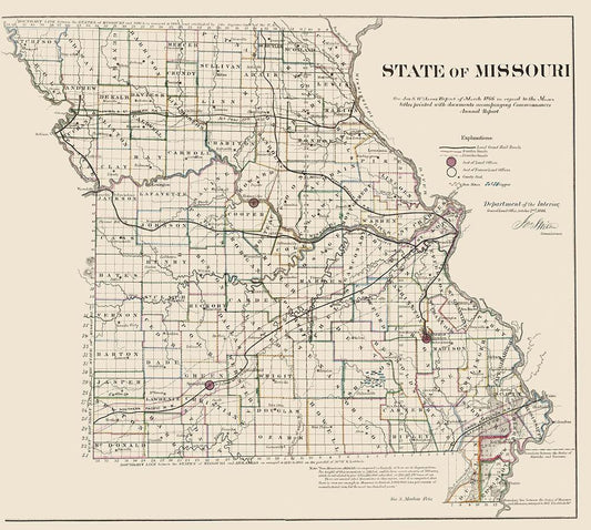 Missouri - USGLO 1866 White Modern Wood Framed Art Print with Double Matting by USGLO