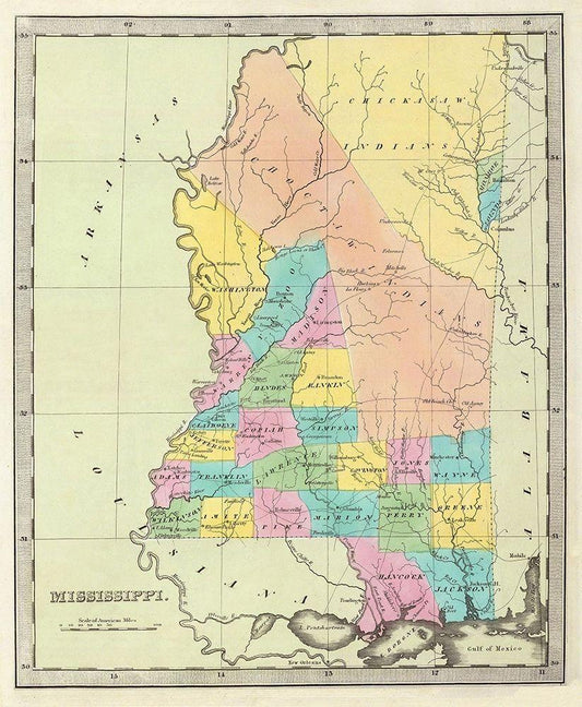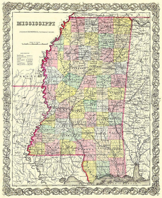 Mississippi - Colton 1855 White Modern Wood Framed Art Print with Double Matting by Colton