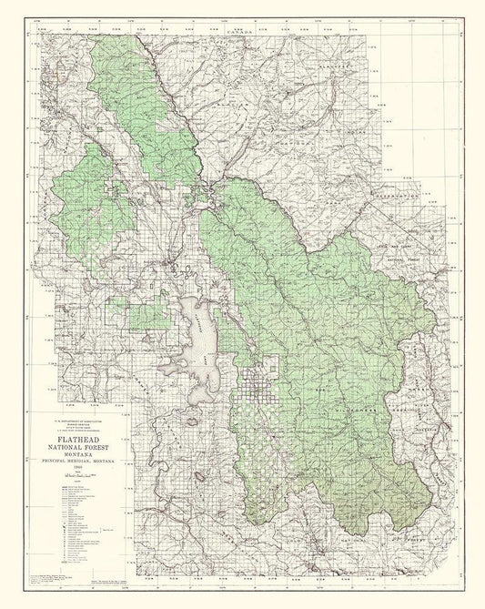 Flathead National Forest Montana - USGS 1948 White Modern Wood Framed Art Print with Double Matting by USGS