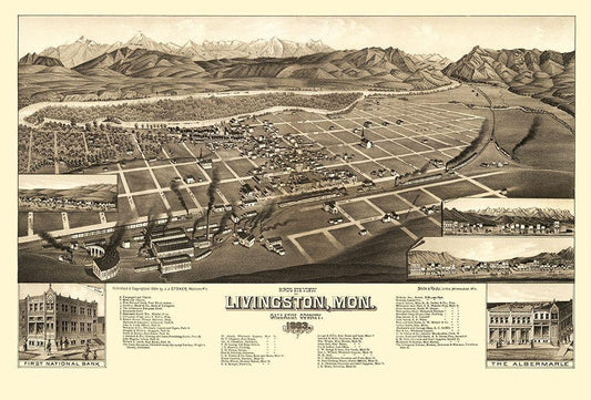 Livingston Montana - Stoner 1884 White Modern Wood Framed Art Print with Double Matting by Stoner