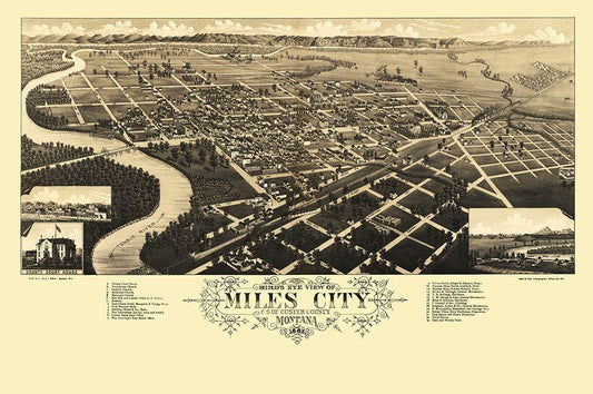 Miles City Montana - Stoner 1883 White Modern Wood Framed Art Print with Double Matting by Stoner