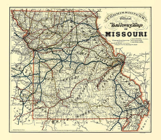 Missouri Railway Map - McHenry 1888 White Modern Wood Framed Art Print with Double Matting by McHenry