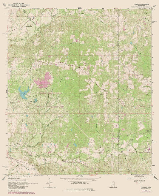 Pinebur Mississippi Quad - USGS 1969 White Modern Wood Framed Art Print with Double Matting by USGS