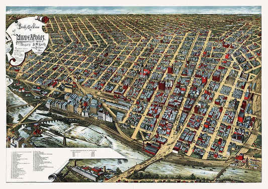 Minneapolis Minnesota - Smith 1891 White Modern Wood Framed Art Print with Double Matting by Smith