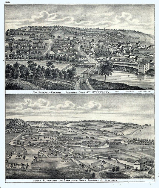 Preston Minnesota - Moore 1874 White Modern Wood Framed Art Print with Double Matting by Moore
