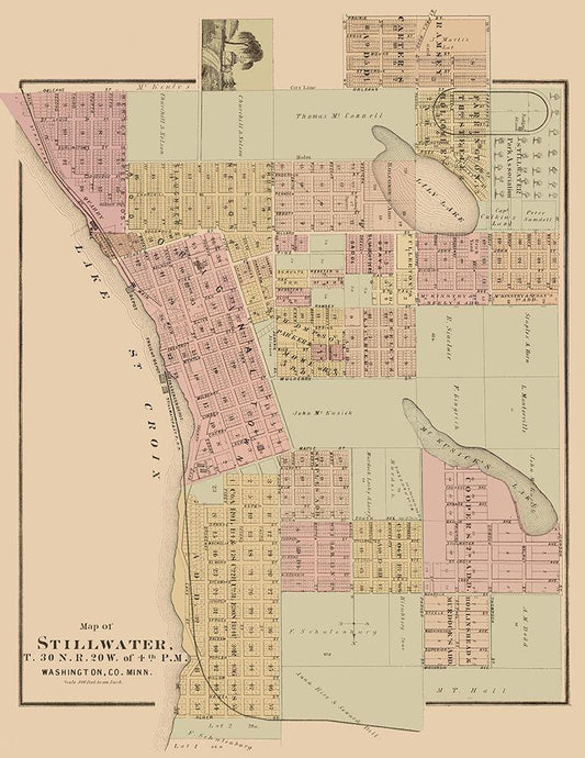 Stillwater Minnesota Landowner - Andreas 1874 White Modern Wood Framed Art Print with Double Matting by Andreas