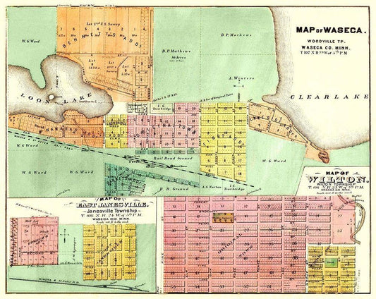 Waseca Minnesota Landowner - Andreas 1874 White Modern Wood Framed Art Print with Double Matting by Andreas