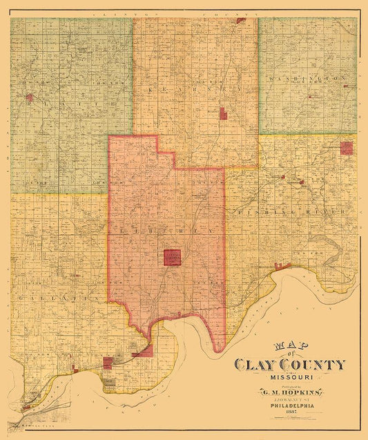 Clay County Missouri - Hopkins 1887 White Modern Wood Framed Art Print with Double Matting by Hopkins