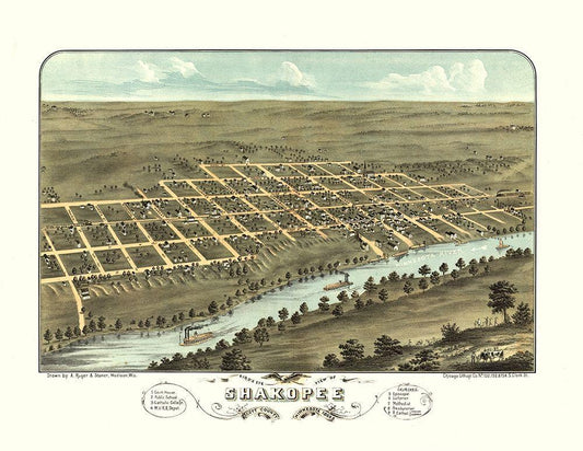 Shakopee Minnesota - Stoner 1869 White Modern Wood Framed Art Print with Double Matting by Stoner