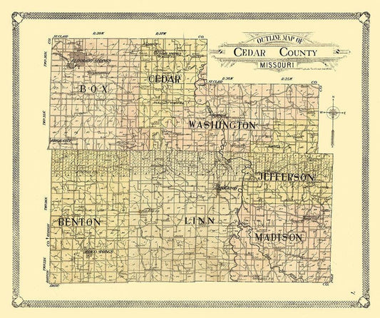 Cedar County Missouri -1908 White Modern Wood Framed Art Print with Double Matting by Unknown